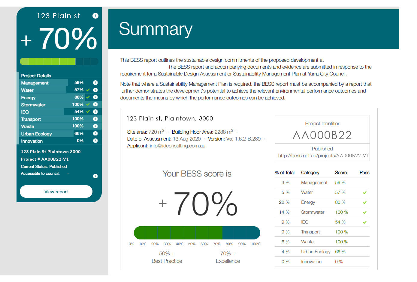 The Built Environment Sustainability Scorecard (BESS) is a building sustainability tool developed by the Victorian Council Alliance for a Sustainable Built Environment (CASBE). Used in the planning permit stage, it is used to evaluate the energy and water efficiency, thermal comfort and overall environmental sustainability performance of developments against a set of benchmarks. LID Consulting are well placed to identify sustainability focussed options and manage development submissions using the BESS tool having played a significant part in its development in 2015.