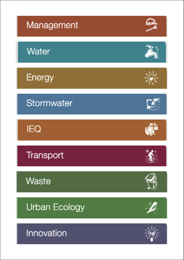 Sustainability Management Plans detail the Ecological or Environmentally Sustainable Design (ESD) elements that are to be included in a particular development. They address different categories of sustainability such as: Energy Efficiency, Internal Environment Quality, Water Sensitive Urban Design, Potable Water Demand Reduction, Transport, Waste, Materials selection, Urban Ecology, Management, and Community and Maintenance initiatives.